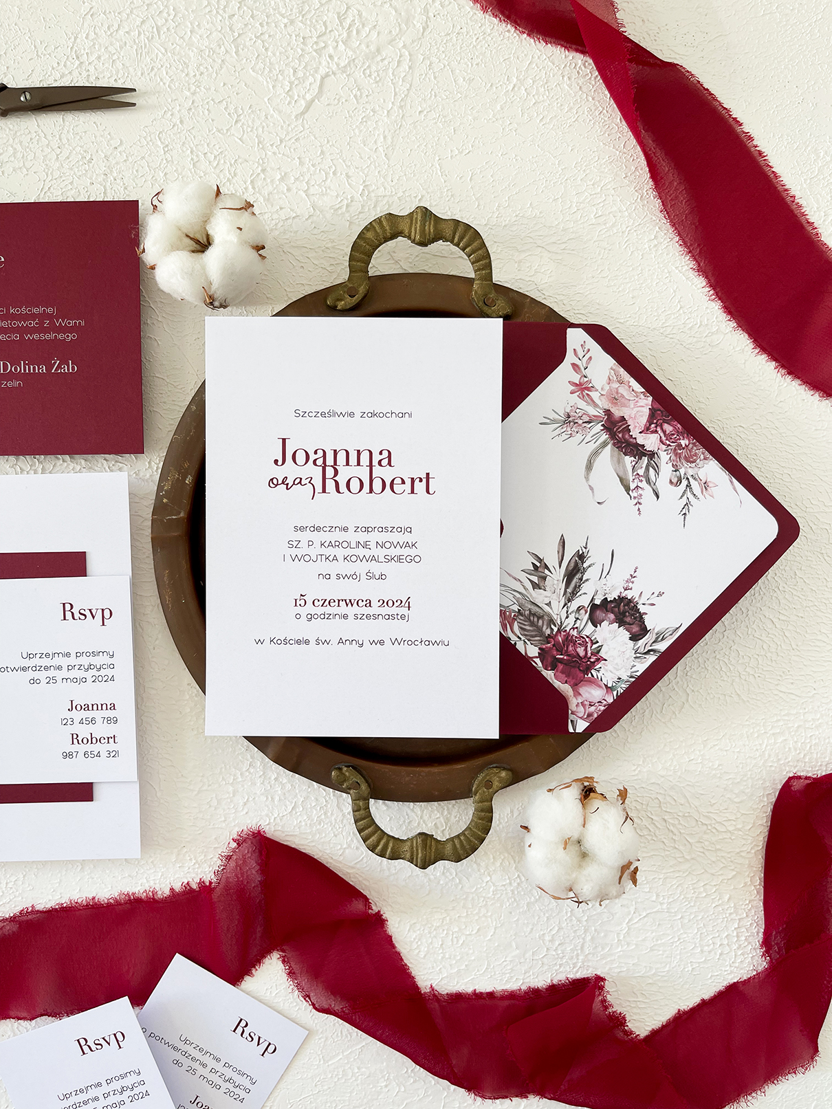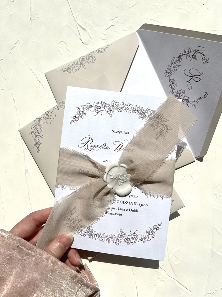 Wklejka do koperty dopasowana jest stylistycznie do motywu zaproszenia.