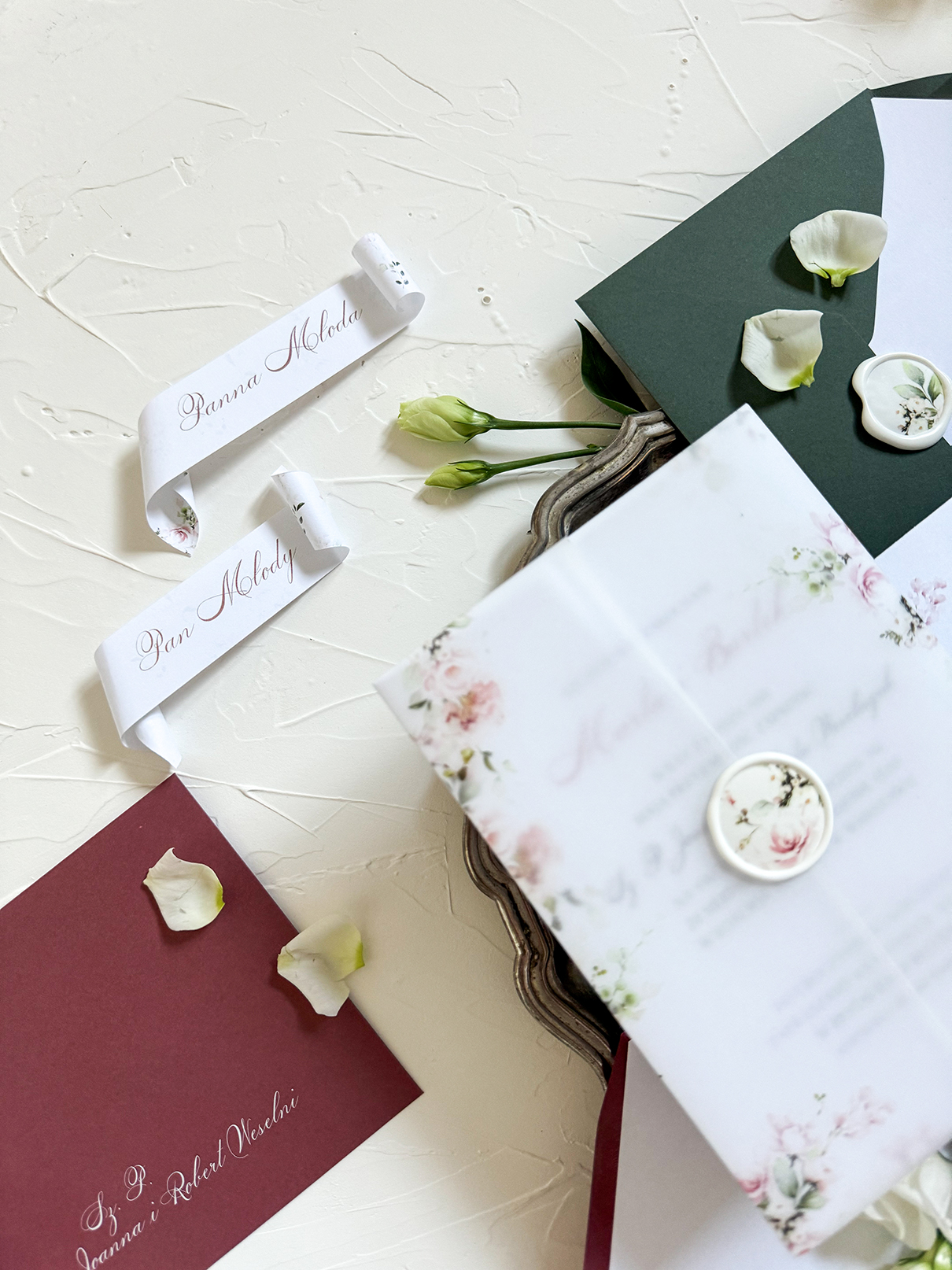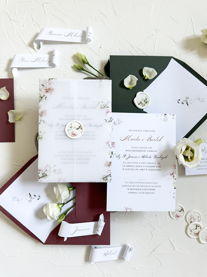 Uwaga! Nadruk na klapie kopert dotyczy np. inicjałów, daty, krótkiego zdania, itp. Koperty z nadrukiem florystycznym lub innym, który dochodzi o brzegów koperty możliwy jest tylko przy kopercie projektowanej, ręcznie robione.